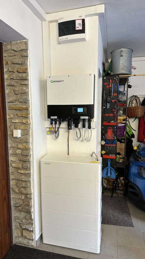 - Bateriový systém Growatt ARK skapacitou 7,68 kWh uchovává přebytky energie na později, což znamená, že i večer nebo při výpadku sítě máte energii k dispozici.